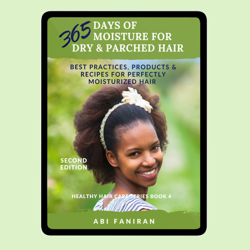 365 Days of Moisture for Dry and Parched Hair: Best Practices, Products & Recipes for Perfectly Moisturized Hair is Book 4 in the popular Healthy Hair Care Series – natural hair care books for black hair.